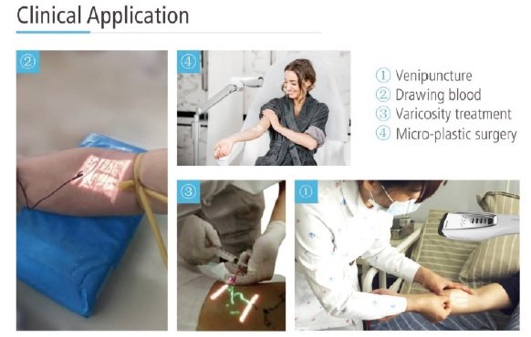 The Projection Vein Finder V800 is based on the principle that human hemoglobin has a higher absorption of infrared light than other tissues. With our enhanced imaging processing unit, up 80% invisible veins can be detected. The processed vein image is synchronously and precisely projected back on to the skin.
